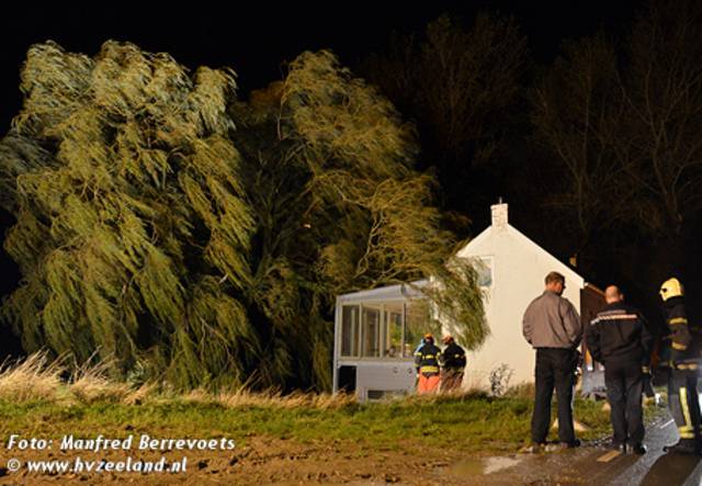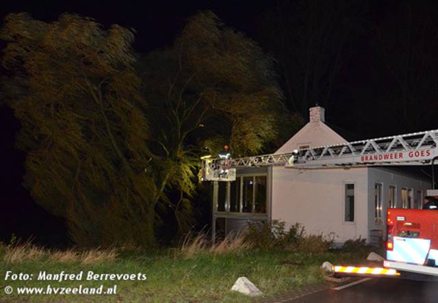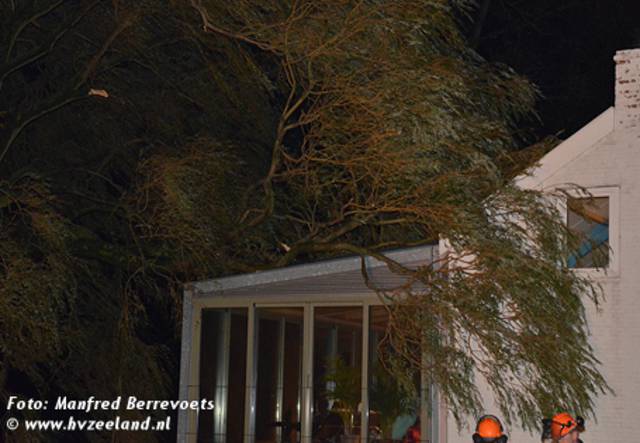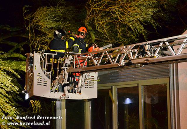 De brandweer van Nieuwdorp is maandagavond ingezet voor het verwijderen van een grote tak die op een woning in Lewedorp terecht was gekomen. Met behulp van de ladderwagen van Goes is de tak in stukken gezaagd en van het dak verwijderd.